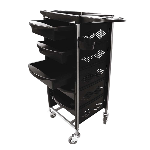 Pomocnik fryzjerski BRAVO stanowi niezbędny przybornik do pracy. W jego pojemnych szufladach pomieścisz wszystko to, co potrzebne podczas wykonywania zabiegów. Dodatkowym atutem są kółeczka, dzięki którym będziesz możesz przemieszczać pomocnik.