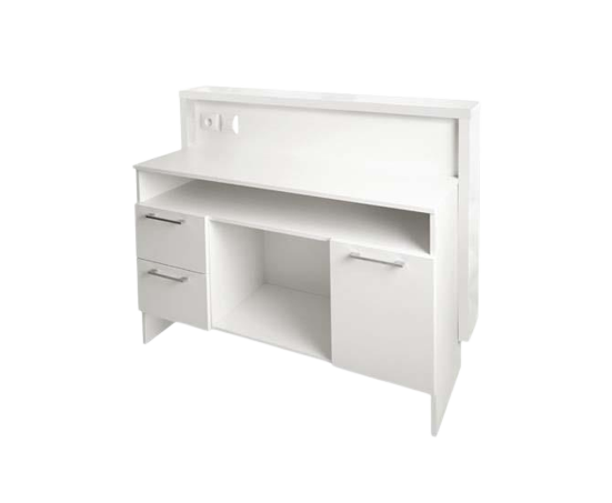Recepcja fryzjerska SOFIA posiada prosty, stylowy i nowoczesny kształt. Wykonana jest z eleganckiej płyty akryl o wysokim połysku oraz posiada podświetlenie wewnętrzne usytuowane za plexi mleczną.